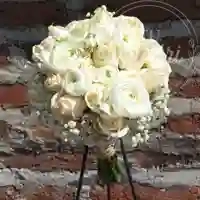 Ramo de novia 3 girasoles 10 rosas blancas delphinium azul