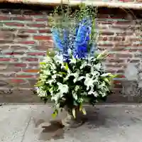 Un arreglo floral encantador que combina la serenidad del blanco con la frescura del azul, elaborado con flores de temporada en una elegante ánfora. Su diseño transmite calma, confianza y pureza, convirtiéndose en una pieza ideal para matrimonios, ceremonias religiosas o celebraciones que buscan un ambiente romántico y distinguido.