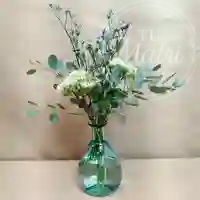 Florero pequeño con flores silvestres naturales, ideal para decorar mesas, rincones o detalles especiales en matrimonios y eventos. Su estilo bohemio y fresco aporta color, movimiento y armonía, creando un ambiente romántico y encantador.