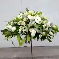 Arco floral en tonos pasteles diseñado para matrimonios al aire libre o interiores. Combina flores naturales y follaje suave que aportan un estilo romántico, moderno y luminoso a la ceremonia. Ideal para crear un entorno lleno de encanto y armonía. (No incluye base).