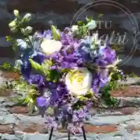 Un bouquet encantador que combina flores lilas y blancas de temporada en un diseño armonioso y elegante. Este ramo transmite romanticismo, frescura y sofisticación, ideal para novias que buscan un estilo delicado y lleno de encanto en su día especial. Perfecto para aportar un toque de color suave y elegante a la boda.