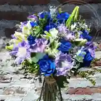 Un bouquet romántico y delicado que combina la suavidad de las rosas con la frescura y textura de las scabiosas azules. Su armonía de colores y diseño elegante lo hace ideal para novias que buscan un estilo sofisticado, natural y lleno de encanto. Elaborado con flores de temporada, este ramo aporta frescura y elegancia a tu día especial.